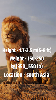 The lion is a large cat of the genus Panthera native to Africa and India. It has a muscular, broad-chested body, short, rounded head, round ears, and a hairy tuft at the end of its tail. It is sexually dimorphic; adult male lions are larger than females and have a prominent mane...